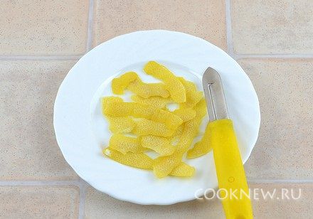 С лимона очень тонко счистить овощным ножом цедру, не затрагивая белый слой. Из самого лимона выдавить сок.