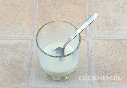 Крахмал залить 50 мл молока, перемешать