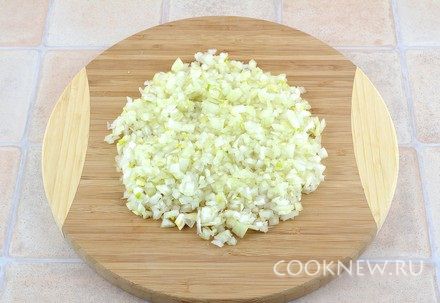 Готовим начинку. Лук почистить, очень мелко порезать