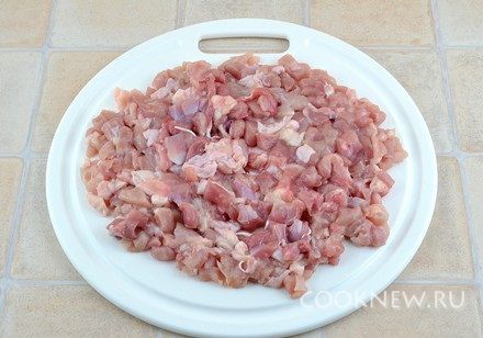 С окорочков срезать мясо, и мелко его порезать (жир не убирать, чтобы самса получилась сочнее)