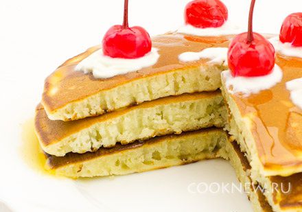 Панкейки (англ. - Pancakes) - это американские пышные блинчики. По форме и виду похожи на наши оладьи – высокие, пышные и пористые, но при этом готовятся на молоке, как блины. Также в отличие от оладий, которые жарятся в масле, панкейки готовятся на абсолютно сухой сковороде и поэтому получаются совершенно не жирными