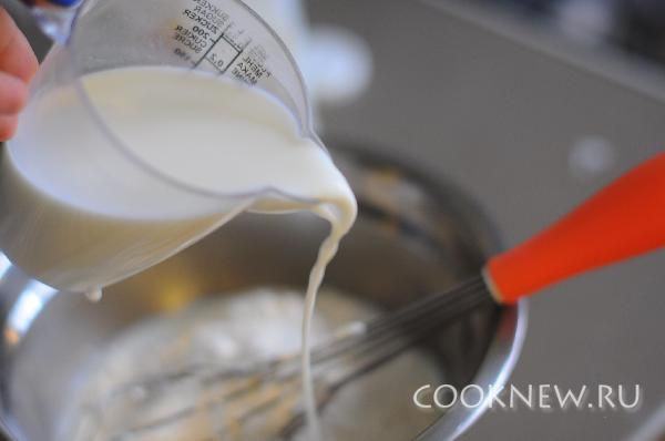 Яйца, муку, сахар, соль и немного (50мл) молока смешать с помощью венчика, чтобы не было комочков. Постепенно влить остальное молока, порциями, хорошенько перемешивая. В конце добавить подсолнечное масло
