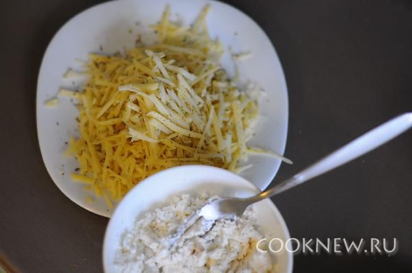 Фету растолочь вилкой, добавив кориандр. Сыр потереть и смешать с орегано. Подойдет и любая другая травка, которая вам нравится. Можно использовать и свежую зелень