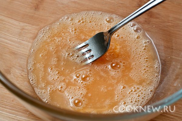 Яйца слегка взбейте вилкой с солью и сахаром