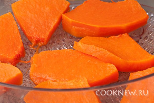 Тыкву очистите от шкуры и волокон с семенами, мякоть нарежьте не слишком крупными кусками. Дальше можно сварить тыкву, приготовить в пароварке, запечь в духовке или даже в микроволновой печи. Задача - сделать тыкву мягкой