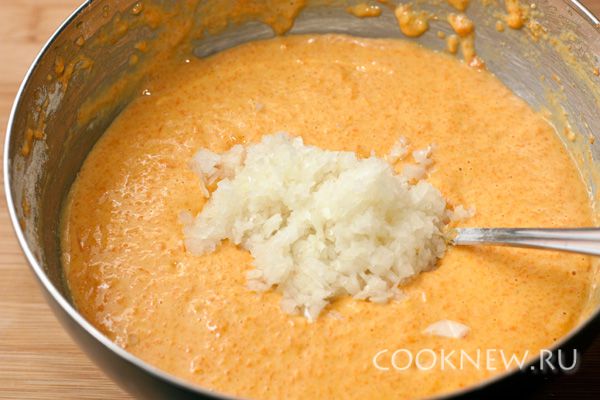 В блендере измельчите небольшую луковицу, добавьте в тесто