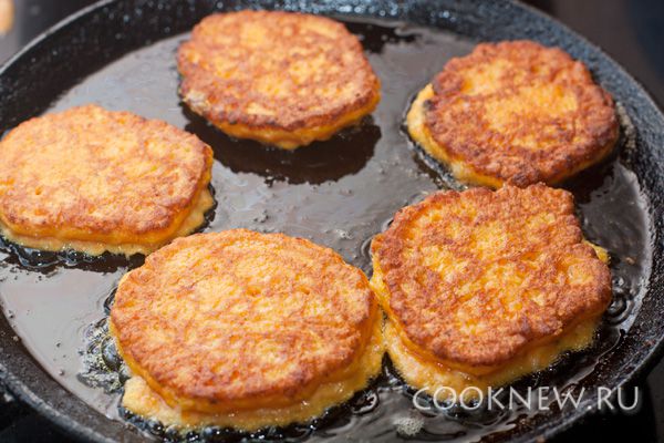 Жарьте оладьи на умеренно разогретой сковороде в небольшом количестве растительного масла