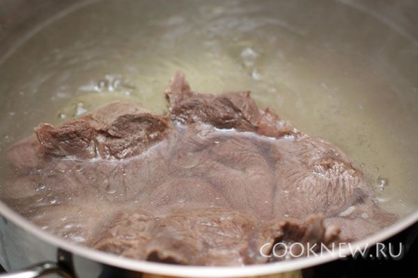 Сварите мясо в 2х литрах воды до мягкости. Это занимает обычно около 2 часов