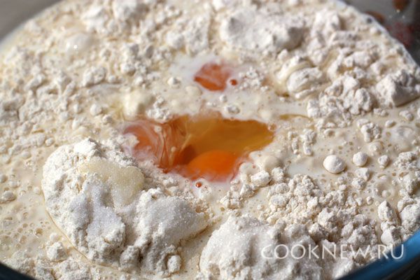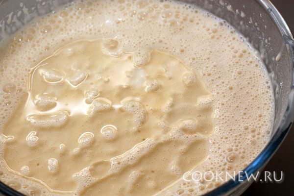 В получившееся жидкое тесто влейте растительное масло и размешайте