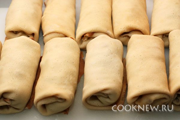 Свернутые блинчики поджарьте со всех сторон непосредственно перед подачей