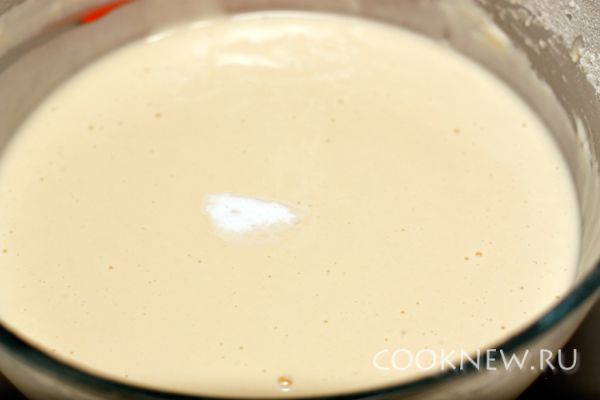 Хорошо размешайте тесто, чтобы не было комков и добавьте соду