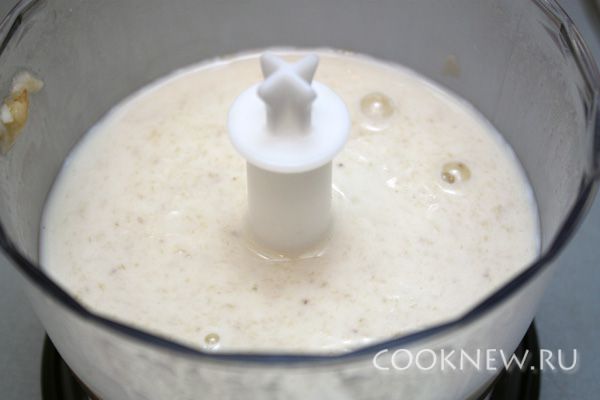 Для начала пару бананов измельчим в блендере до однородности. Чтобы было легче это сделать, добавьте туда половину всей порции молока