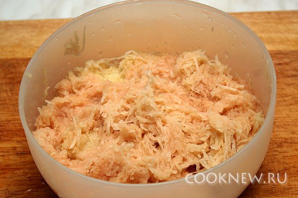 Очистить картофель и натереть на мелкой терке