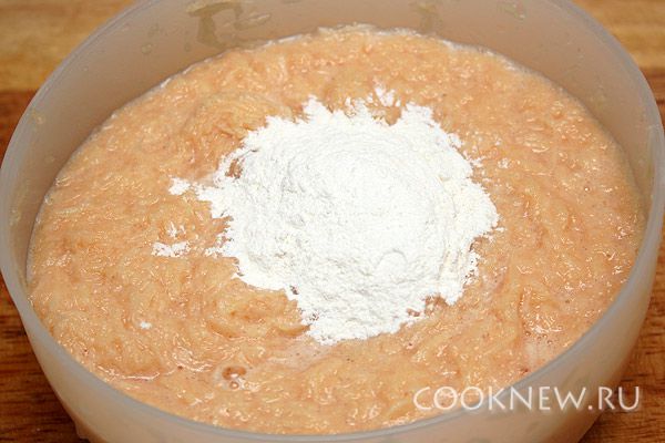 Добавить муку и еще раз перемешать