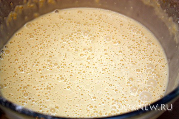 Добавляем остальные ингредиенты и хорошо перемешиваем, чтобы не было комочков и масса стала однородной. Воды нужно 200 мл (дополнительно к молоку)