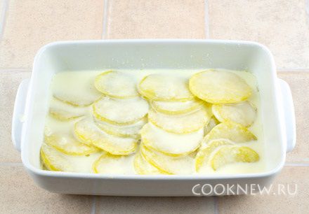 Поставить в разогретую до 180 градусов духовку. Готовить 15-20 минут. Готовить при более высокой температуре или дольше, чем указано, не стоит. Потому что смесь сливок и молока может перекипеть и свернутся, что испортит весь вкус блюда. Готово