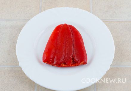 Остывшие перцы освободить от шкурки. Если плохо очищается, можно часть шкурок оставлять, сильно на вкусе готового блюда это не скажется. Отрезать самый вверх каждого перца, вычистить семена. Должен получиться целый стаканчик.