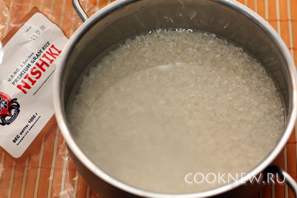 Рис хорошо промываем и замачиваем на 10-15 минут в холодной воде