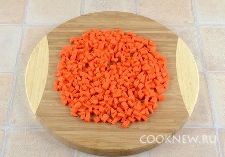 Морковь почистить, порезать мелкими кусочками (или натереть на крупной терке)