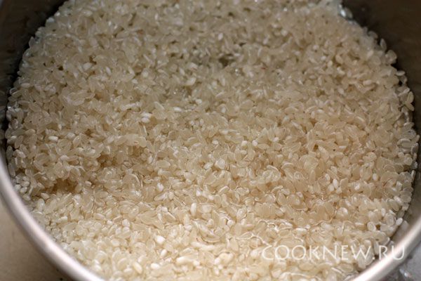 Рис для суши хорошо промываем до тех пор, пока вода не будет прозрачной. Затем добавляем воды в соотношении примерно 1:1,2 (на стакан риса чуть больше стакана воды) и ставим варить, накрыв плотно крышкой. На большом огне доводим до кипения, затем уменьшаем огонь до слабого и варим по инструкции (в среднем 12-15 минут)