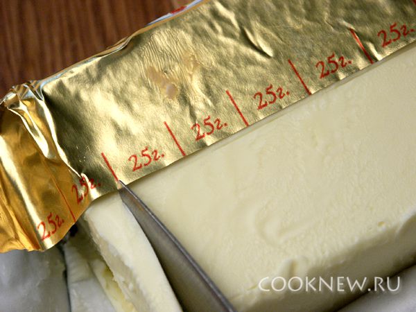 На слабом огне растапливаем масло. Наклоняем сковороду во все стороны, чтобы смазать всю поверхность. Тоненькой струйкой выливаем почти все растопленное масло в яичную смесь. Яйца постоянно, взбиваем вилкой. Если в готовом омлете на срезе будут видны белые и желтые полосы, так это еще лучше