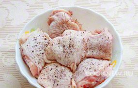 Окорочка помыть, пересыпать солью и натереть черным перцем. Оставить мариноваться на 12 часов желательно, удобно мариновать с вечера, чтобы приготовить на ужин следующего дня. (Но если времени совсем нет можно жарить сразу.)