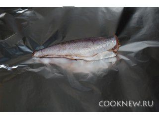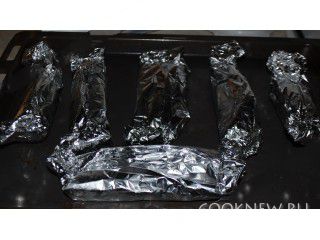 Теперь по одной или по две рыбки заворачиваем в фольгу, т.е. порционно