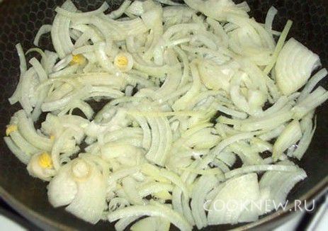Разогрейте сковороду, влейте подсолнечное масло, положите лук