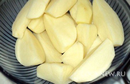 Масло налить в глубокую сковороду или низкую кастрюлю и сильно нагреть. Тем временем картофель очистить, помыть и обсушить. Небольшие клубни опускать целыми, а большие -предварительно разрезать на 2-3 части
