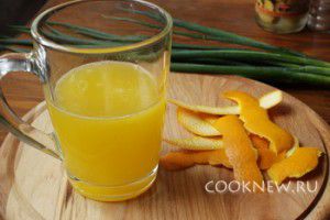Срезать с апельсина цедру. Затем выдавить сок