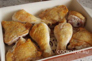 Затем окорочка переложим в форму для запекания.