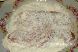 Хорошо обмокайте в муке каждый антрекот с двух сторон