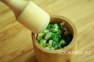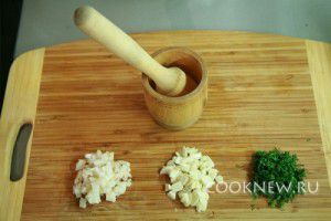 Этот рецепт имеет уникальный аспект – соус. Для его приготовления мелко режем сало, петрушку и чеснок. Сала должно быть чуть больше чайной ложки. Этот ингредиент придаст аромат борщу.
