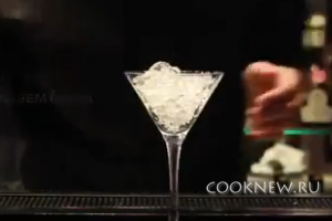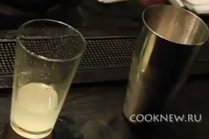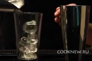 Затем возьмите шейкер и также положите в него лед. Затем закройте его и сделайте несколько энергичных движений. Для этого коктейля шейкер (блендер) также нужно охладить. В дальнейшем лед вам не понадобиться