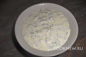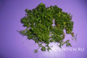 Далее нужно нарубить мелко укроп, предварительно тщательно вымытый. Можно добавить также свежую петрушку, кинзу, нарезанные перья зеленого лука, а также листья мяты, которые очень освежают этот летный соус