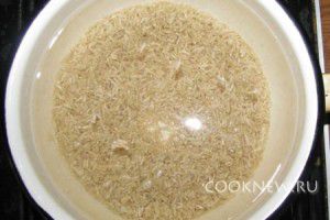 Промытый рис ставим вариться в чуть подсоленную воду до полуготовности