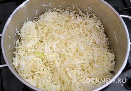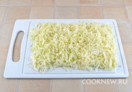 Капусту мелко нашинковать.