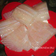 Филе рыбы нарезать кусочками крупного или среднего размера, посолить по вкусу с обеих сторон