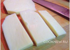 Режем сыр на кусочки тодщиной в 1-1,5 см