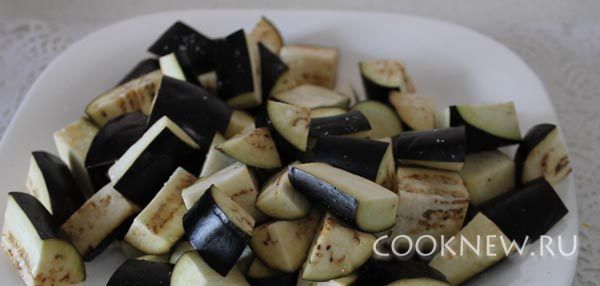 Баклажаны вымыть, нарезать крупными брусочками, посолить и убрать в холодильник на 15 минут