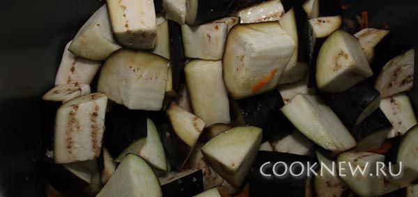 Добавьте нарезанные баклажаны в мультиварку, а также любимые специи