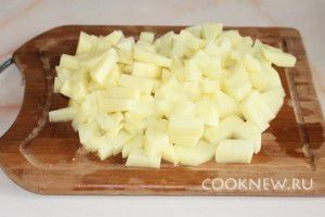 Очистите картофель и порежьте средними кусочками