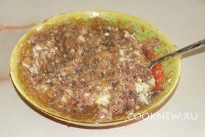 Пока готовится картошка, займитесь тушенкой. Выложите банку тушенки в глубокую тарелку и разомните вилкой