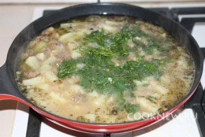В конце добавьте зелень, как следует все перемешайте и снимите с плиты.