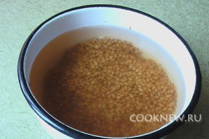 Для начала подготовьте перловую крупу. Промойте ее несколько раз (пока не измениться цвет воды). Потом замочите перловку в холодной воде. Когда наступит время варить кашу, слейте воду с крупы.