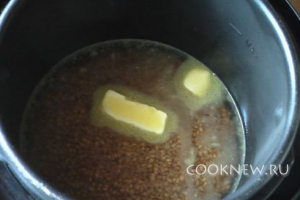 Поставьте воду на плиту (1,5 стакана). Параллельно засыпьте подготовленную перловую крупу в кастрюльку мультиварки. Затем залейте кипятком крупу. Потом посолите и добавьте масла сливочного (кусочек). Вы можете конечно залить кашу просто водой, но так она быстрее свариться. Потом закройте крышку мультиварки. Найдите режим «высокое давление» и выставьте его на 20 минут. Когда мультиварка подаст сигнал (звуковой), переставьте на режим «тушение», а после него на «подогрев». Выставив, таким образом, программу в мультиварке, вы можете заняться своими делами, а каша дойдет сама. Обычно это занимает не менее 90 минут