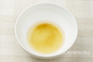 Приготовить заправку для риса: соединить по 2 чайные ложки сахара, рисового уксуса и кипячёной воды — хорошо всё размешать