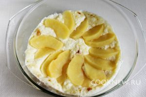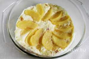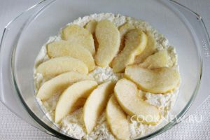 Дольки яблока выложить на поверхность творожного теста по кругу.