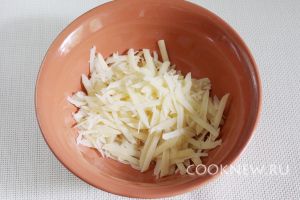 Сыр натереть на крупной тёрке.