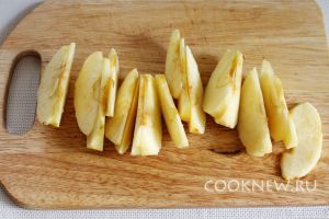 Яблоко очистить от кожуры и семян и нарезать дольками
